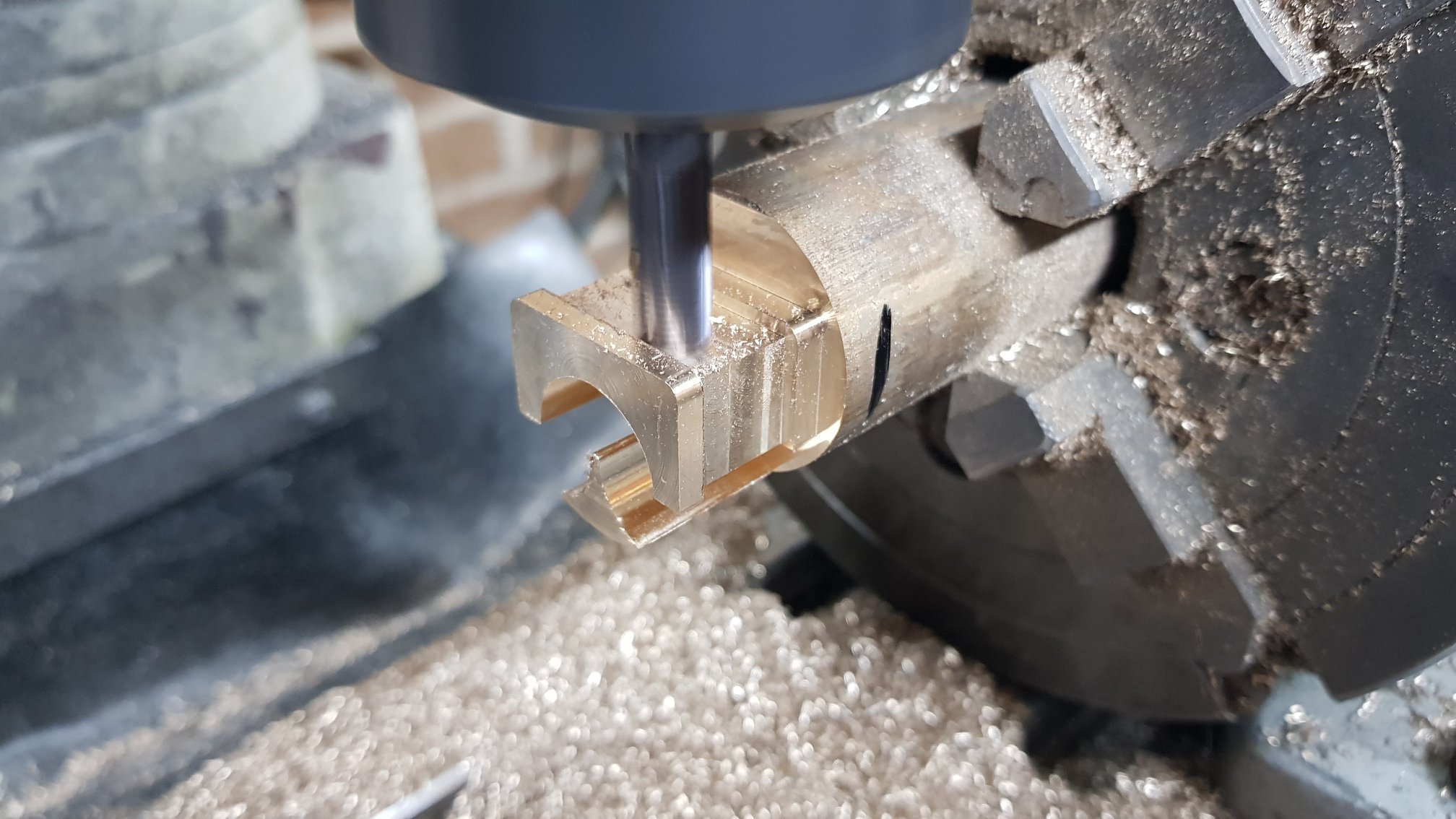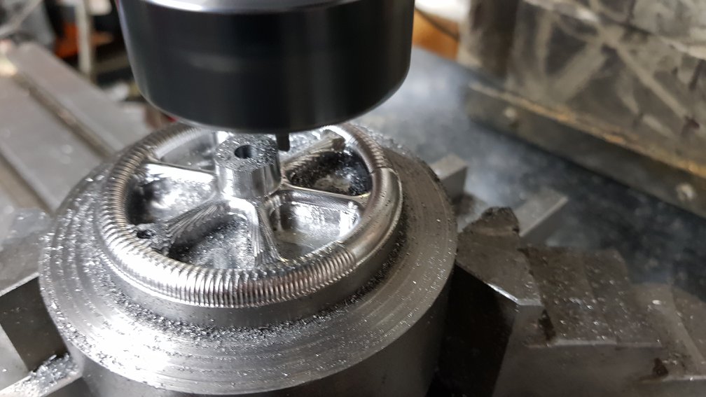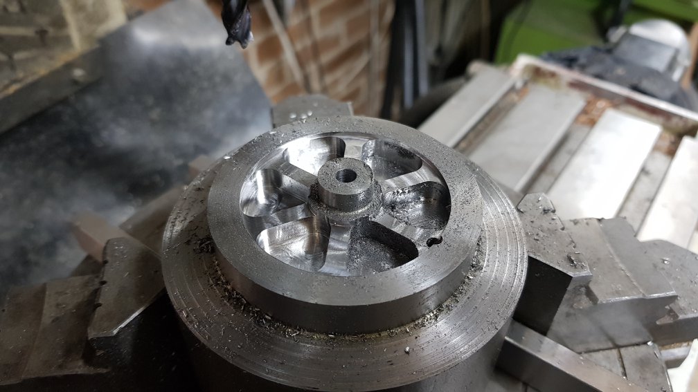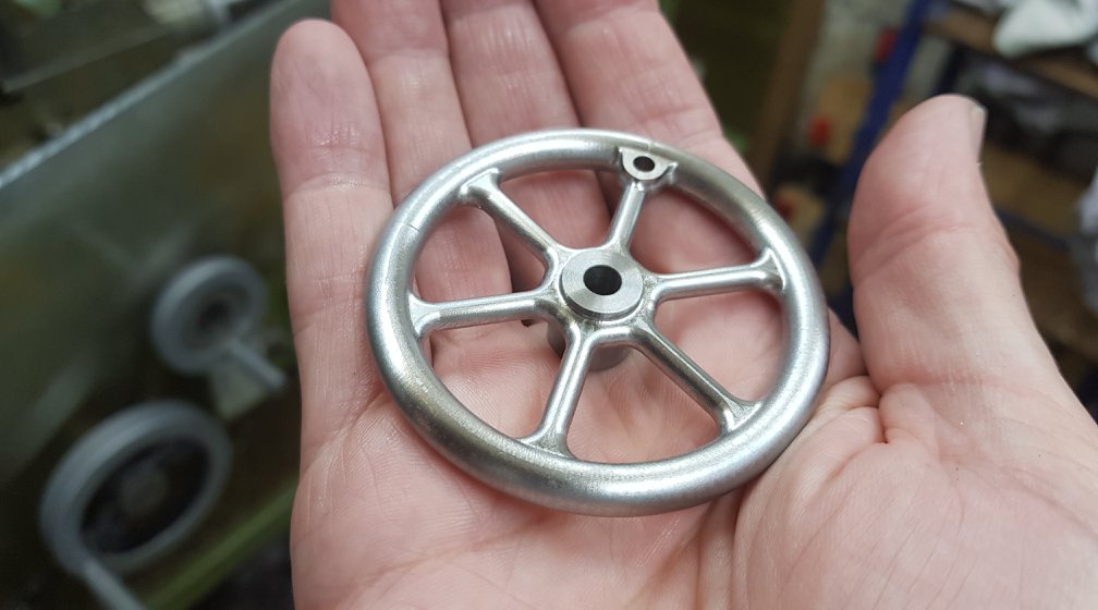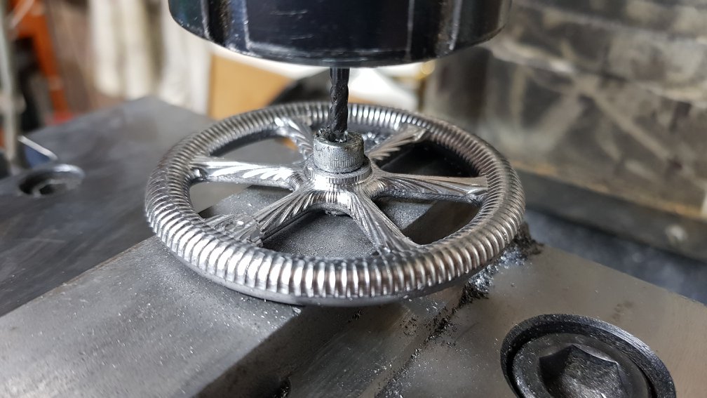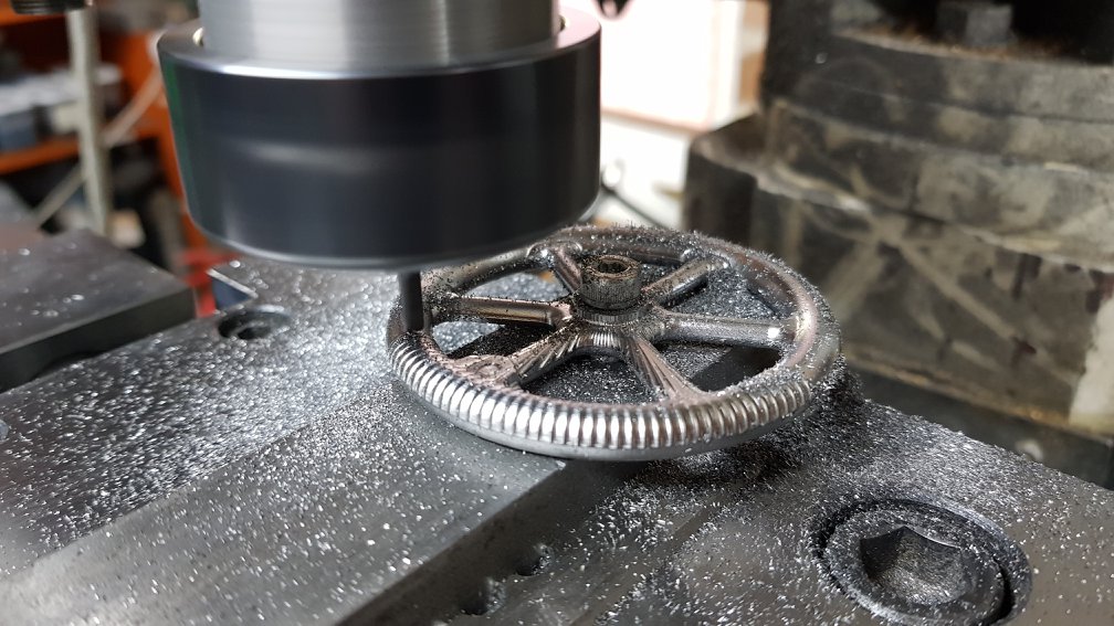 A series of photos showing how a handwheel was produced for the 3" Burrell using a CNC milling machine. You can click on the image to enlarge.