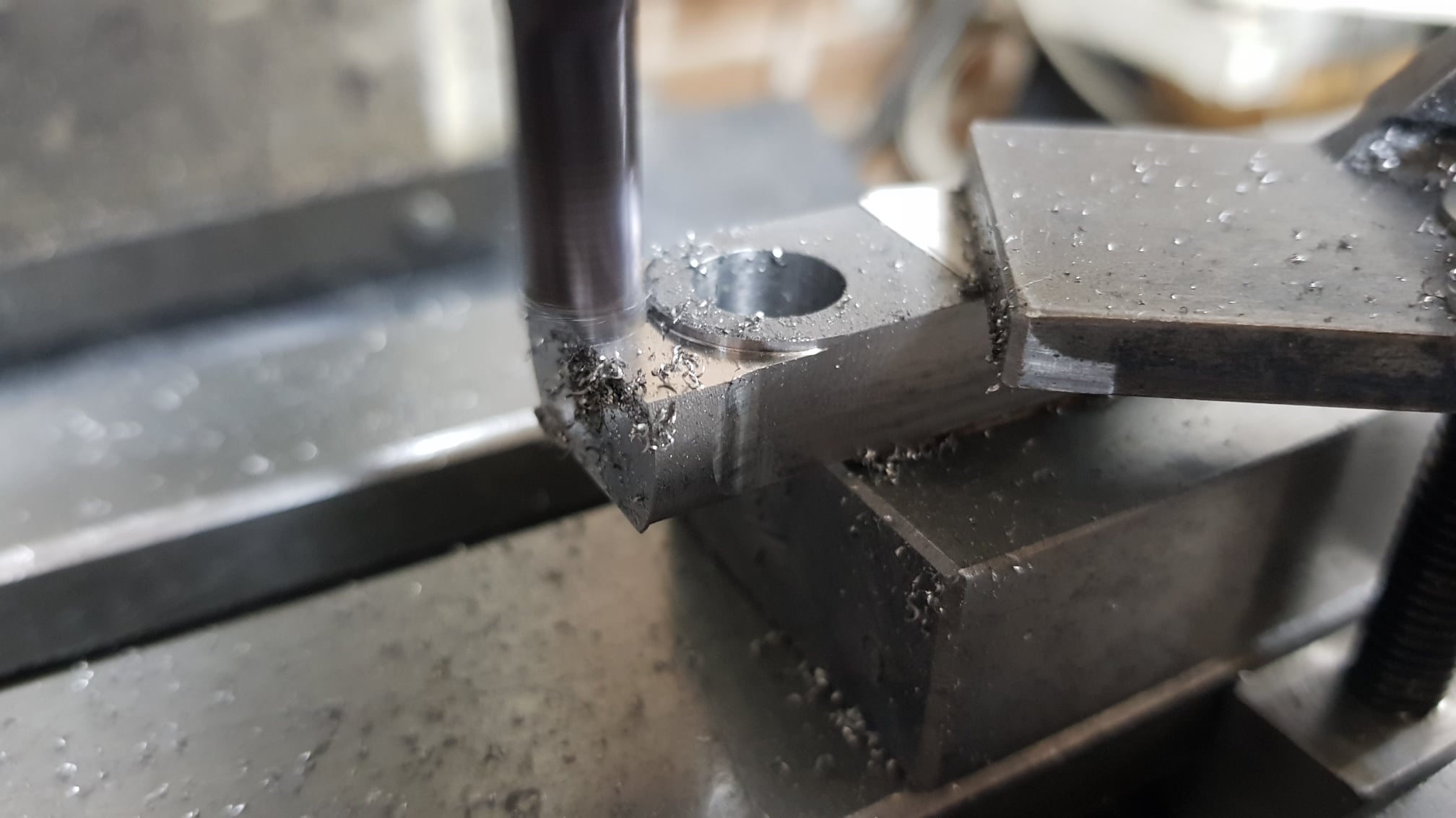 Here are some photos from one of our members producing the Connecting Rod for the Burrell. It is a particularly interesting method of manufacture with nearly all of it being produced on the mill apart from the basic diameters at the start. You can click on the images to enlarge them.